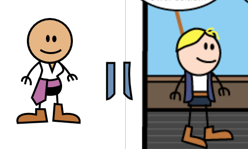 I'll be drawing my swashbuckler with a white shirt similar in style with Haley's top, with black pants and a sash.