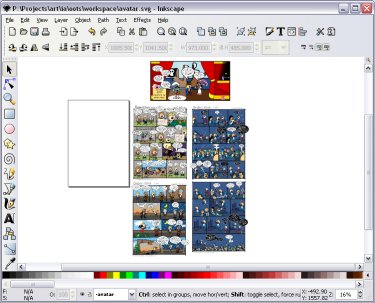 Even if you've got loads of art samples on the desk in front of you it's nice to have concepts, draft work and visual clues right on the screen while you're working in inkscape. That's why we spent some time looking up OotS comics to fit our avatar style and why we've got a concept layer.